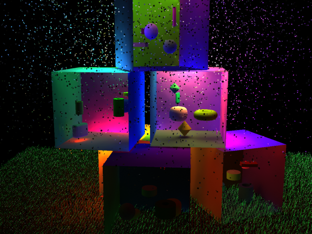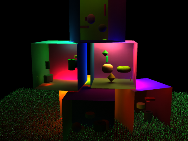All this scenes have been generated with the Cornellbox Generator. Cameras and lights have been manually