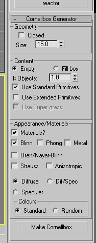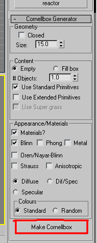 Max chooses similar to when you create a new object. If you choose to go for materials the Cornellbox generator will